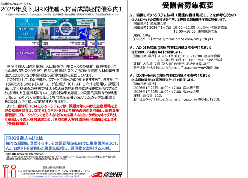 🔶協働ロボットシステム技術https://forms.office.com/r/hLyFNFjrFL